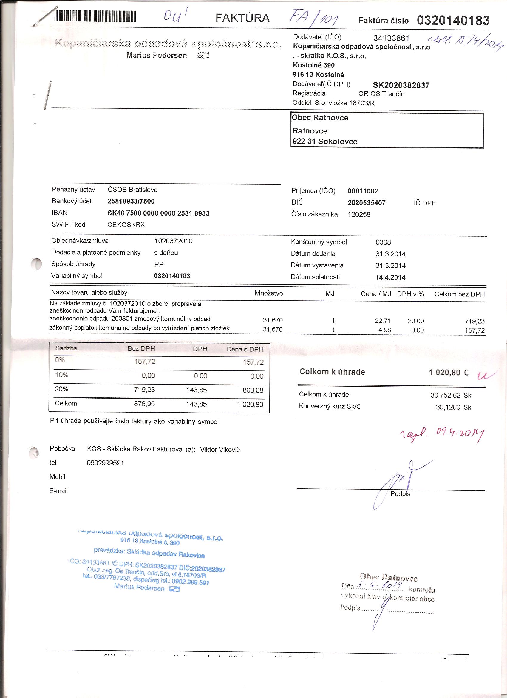 Zmluvy, faktúry, objednávky 2020